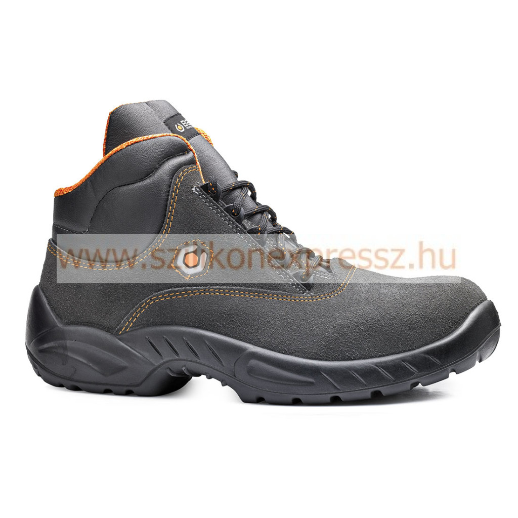 Base S1P munkavédelmi bakancs velúrbőr felsőrésszel. Acél orrvédelemmel ellátott, ütéscsillapítás a saroknál. Antisztatikus és szénhidrogéneknek ellenálló egyedi kialakítású talp, a férfi és női lábnak megfelelő külön kapli szélességgel is választható. Javasolt felhasználási területek: könnyűipar, mezőgazdaság, kreskedelem, szolgáltatóipar, logisztika. Felhasznált anyagok és technológiák: Felsőrész: Velúrbőr.Bélés: SmellStop szagsemlegesítő és antibakteriális technológiával.