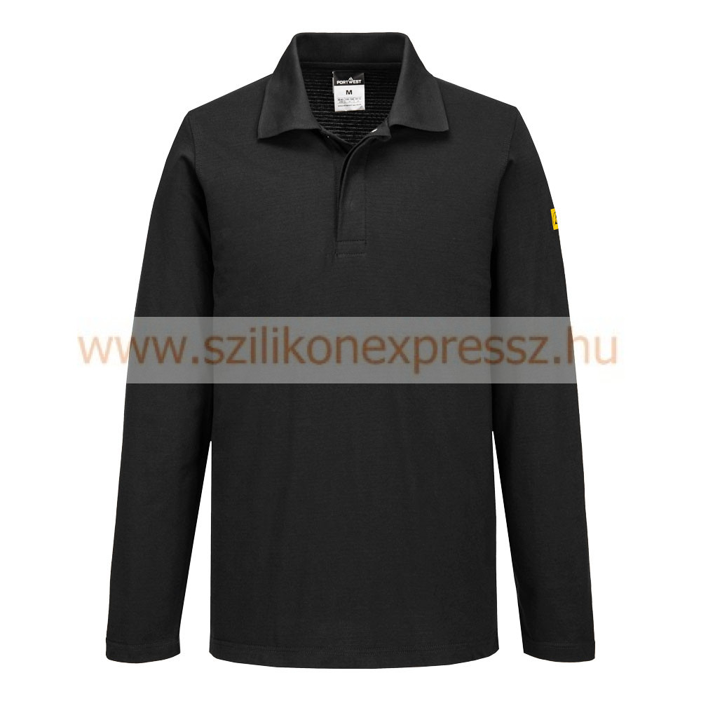 ESD környezetben történő használatra alkalmas hosszú ujjú póló, amely az EN 61340-5-1 szabvány szerint tesztelt, extra komfortot nyújtó magas pamut tartalommal, bordázott gallérral, karcolásmentes kialakítással (rejtett fém alkatrészekkel), szövetbe kötött szénszálakkal (ESD és antisztatikus tulajdonságokat biztosítanak) és CE minősítéssel rendelkezik.