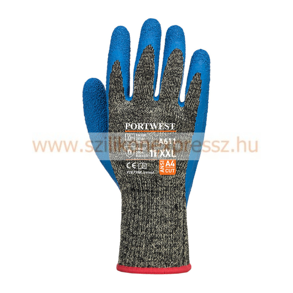 Üvegiparban használható kesztyű. Az aramid bélésnek köszönhetően kiváló a kopásállósága és az EN388:2016 szabvány szerinti D szintű vágásvédelemmel rendelkezik. A latex bevonat erős biztonságos tapadást biztosít nedves és száraz körülmények között. CE minősítés. Kötési sűrűsége 10-es. Érdesített latex markolat, D szintű vágásbiztosság, tartós Aramid vágásbiztos bélés. Kiváló tartósság és tapadás nedves és száraz körülmények között. Ideális az üvegipar számára. 250°C kontakt hő ellen 15 másodpercig nyújt védelmet.