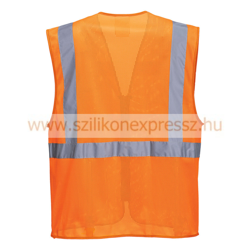 MeshAir technológia garantálja a kiváló légáramlást viselőjének. A MeshAir alapanyag megfelel az EN ISO 20471 szabványnak. A mellény további funkciói: praktikus zsebek, ID kártya tartó, rádió hurok, cipzáras záródás, lélegző hálós szövet.