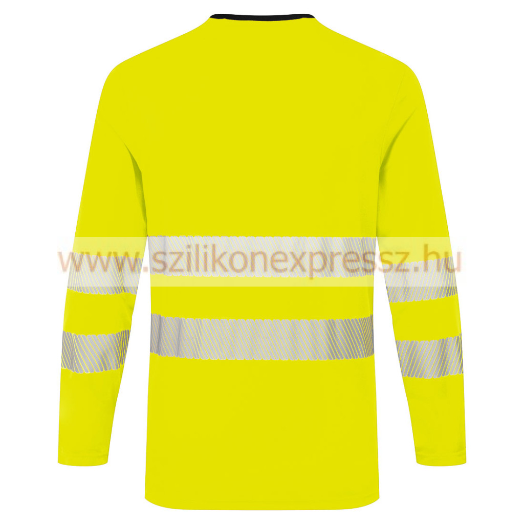 A nedvesség elvezető szövet segít melegen tartani viselője testét, száraz, hűvös helyen Ideális, személyre szabott vállalati viselet Kontraszt szín a stílusos külsőért Ragasztott nyak varrás az extra komfortért A slim fit kialakítás formabontó, de nem szorít Hőillesztett, szegmentált fényvisszaverő szalag hozzáadott jól láthatóságért 40+ UPF minősítésű alapanyag, amely az UV-sugarak 98%-át blokkolja. UKCA jelöléssel EN ISO 20471 szabvány szerint 50 mosásra minősítve