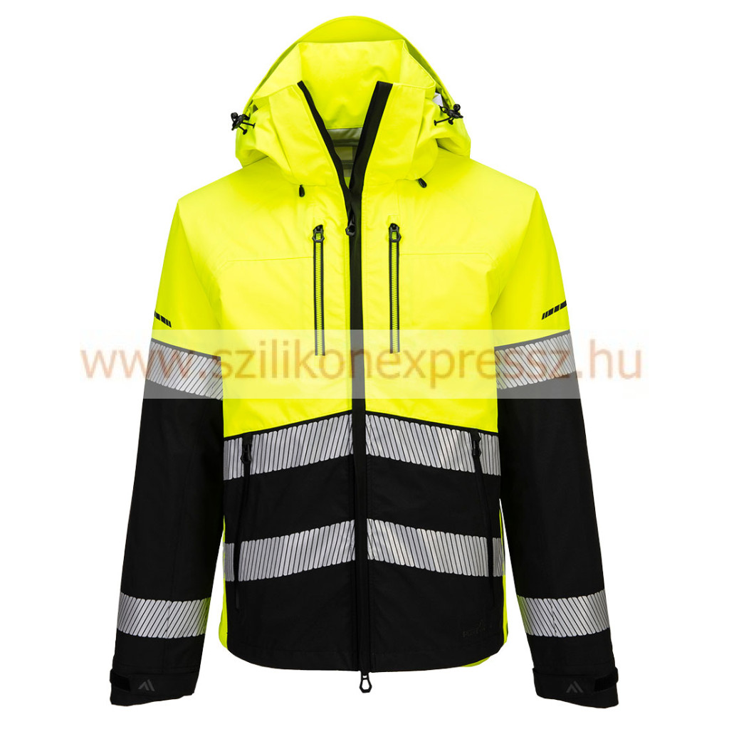 3 rétegű vízálló anyaggal, a víz behatolását megakadályozó vízálló ragasztott varratokkal, rendkívül vízálló, PFAS-mentes Texpel Splash Eco szövetkikészítéssel (a víz lepereg a szövet felületéről), 4 irányban nyúló anyaggal, nyújtás, irányváltás és forgatás közben a kar és a törzs mozgásszabadságát növelő Acti-Reach innovatív egypaneles kialakítással, sisakkal kompatibilis állítható és levehető kapucnival, a fokozott lélegzés érdekében hónalj cipzárakkal, vízálló cipzárakkal, prémium stílussal (előre formázott könyökhajlatokkal), a mellkason cipzáras zsebbel, 2 cipzáras oldalzsebbel, belső zsebbel, tépőzáras, állítható mandzsettával, zsinórral állítható szegéllyel, vágott szegéllyel, a fokozott védelem érdekében állvédővel, minden cipzárhoz kiváló tapadású húzóval, tartós, légáteresztő, szélálló és vízálló szövettel, hőillesztett, szegmentált fényvisszaverő szalaggal, az egyszerű hozzáférését kétutas cipzárral és 5 sokoldalú, praktikus tárolózsebbel rendelkező jól láthatósági kabát.
