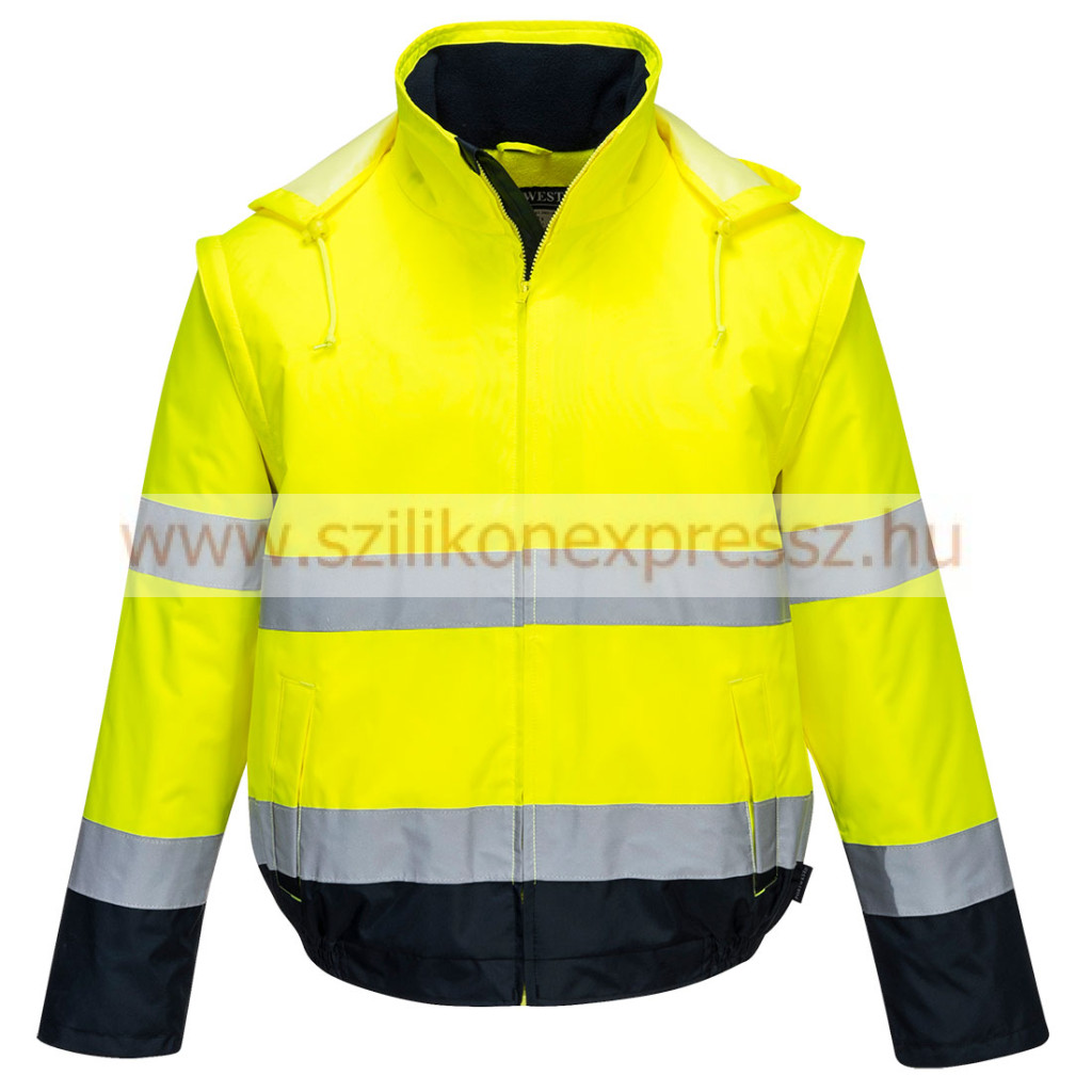 Adaptálható és funkcionális modell amelynek kiváló az ár-érték aránya.Olyan funkciókkal ellátva mint a két nagy zseb belső zseb tépőzárral levehető rejtett kapucni és levehető cipzáras ujjak. Meleg polár béléssel és kontraszt panelekkel a szennyeződések elleni védelem érdekében. Ez a kabát praktikus tartós és megbízható megoldás. UPF 50+ CE minősítés Fényvisszaverő szalag Levehető ujjak Polár bélelt gallér Félig gumírozott derékkialakítás Belső bordázott mandzsetták 2 az 1-ben kabát 3 zseb Teljesen bélelt és párnázott Vízálló ragasztott varratokkal Rejtett kapucni Texpel Splash 50 mosásra minősítve