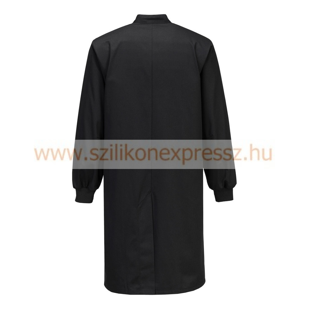 ESD környezetben történő használatra alkalmas kabát, amely az EN 61340-5-1 szabvány szerint tesztelt, gépben mosható (60°C), tartós poliészter/pamut szövettel, szövetbe szőtt szénszálakkal (ESD és antisztatikus tulajdonságokat biztosítanak), a könnyű nyitás érdekében hat sor patenttal, meleget és extra komfortot biztosító bordás mandzsettával, 3 sokoldalú, praktikus tárolózsebbel, tolltartó zsebbel, 2 combzsebbel és CE minősítéssel rendelkezik.