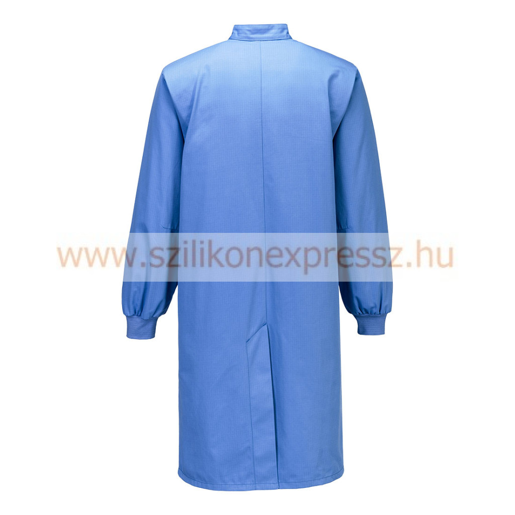 ESD környezetben történő használatra alkalmas kabát, amely az EN 61340-5-1 szabvány szerint tesztelt, gépben mosható (60°C), tartós poliészter/pamut szövettel, szövetbe szőtt szénszálakkal (ESD és antisztatikus tulajdonságokat biztosítanak), a könnyű nyitás érdekében hat sor patenttal, meleget és extra komfortot biztosító bordás mandzsettával, 3 sokoldalú, praktikus tárolózsebbel, tolltartó zsebbel, 2 combzsebbel és CE minősítéssel rendelkezik.