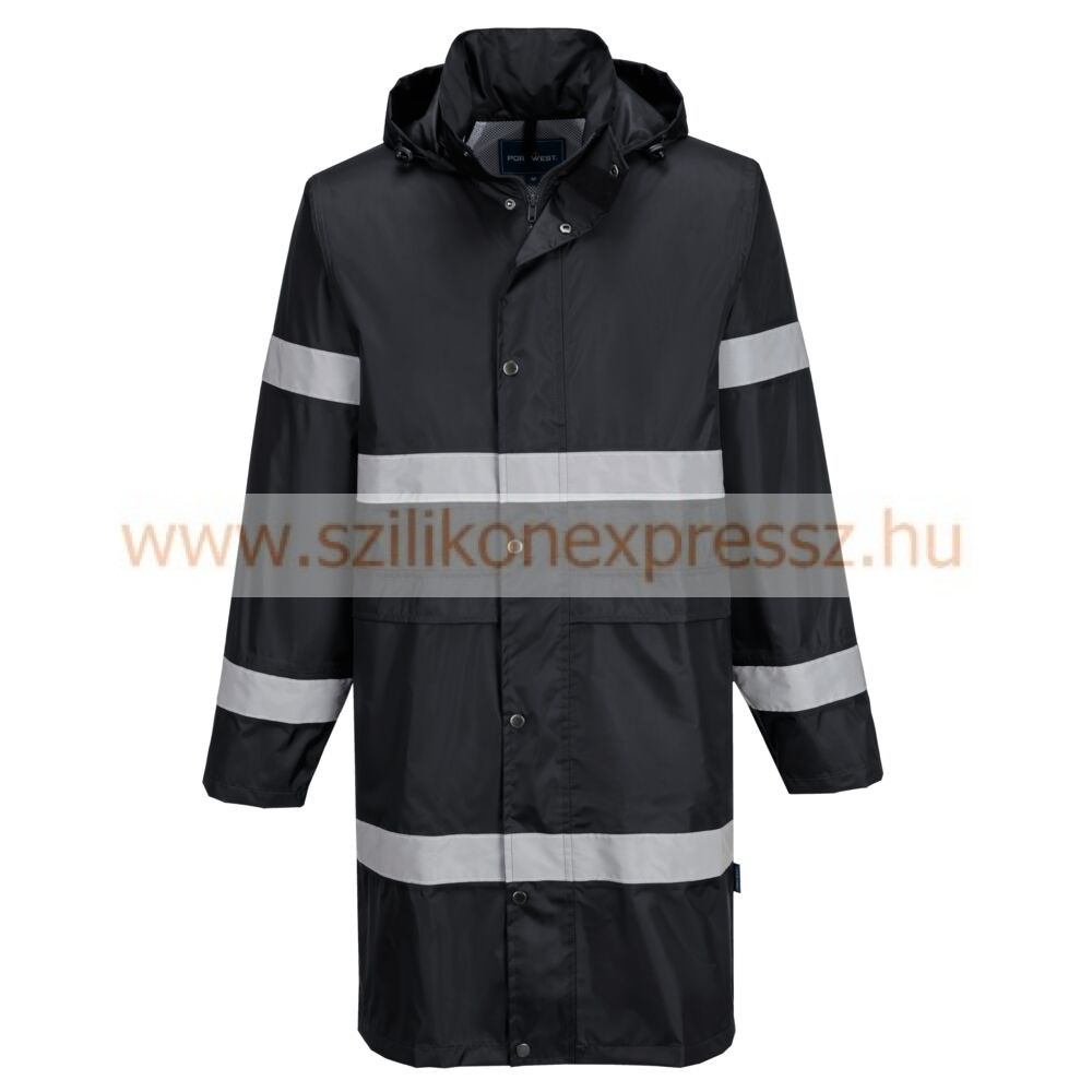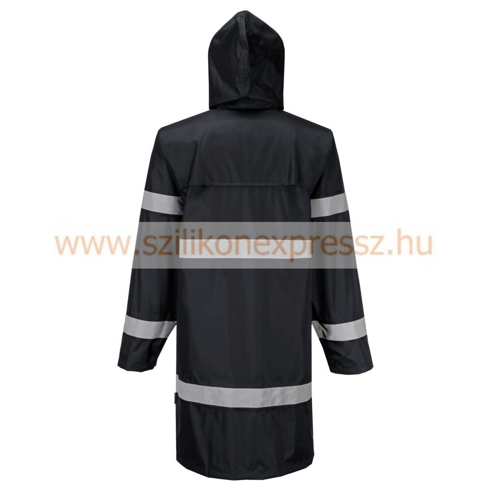 A víz behatolását megakadályozó vízálló ragasztott varratokkal, rendkívül vízálló, PFAS-mentes Texpel Splash Eco szövetkikészítéssel (a víz lepereg a szövet felületéről), jobb lélegzőképességet biztosító szellőzőnyílásokkal, belső gumírozott mandzsettával, könnyen hozzáférhető elülső cipzárnyílással, az elemek elleni védelem érdekében viharlebenyes elülső résszel, a fokozott láthatóságért fényvisszaverő szalaggal, a biztonságos tárolás érdekében 2 zsebbel, praktikus rejtett kapucnival, szellőzőcsatornákkal, REACH-nek megfelelő PVC bevonattal és CE minősítéssel rendelkező kabát.