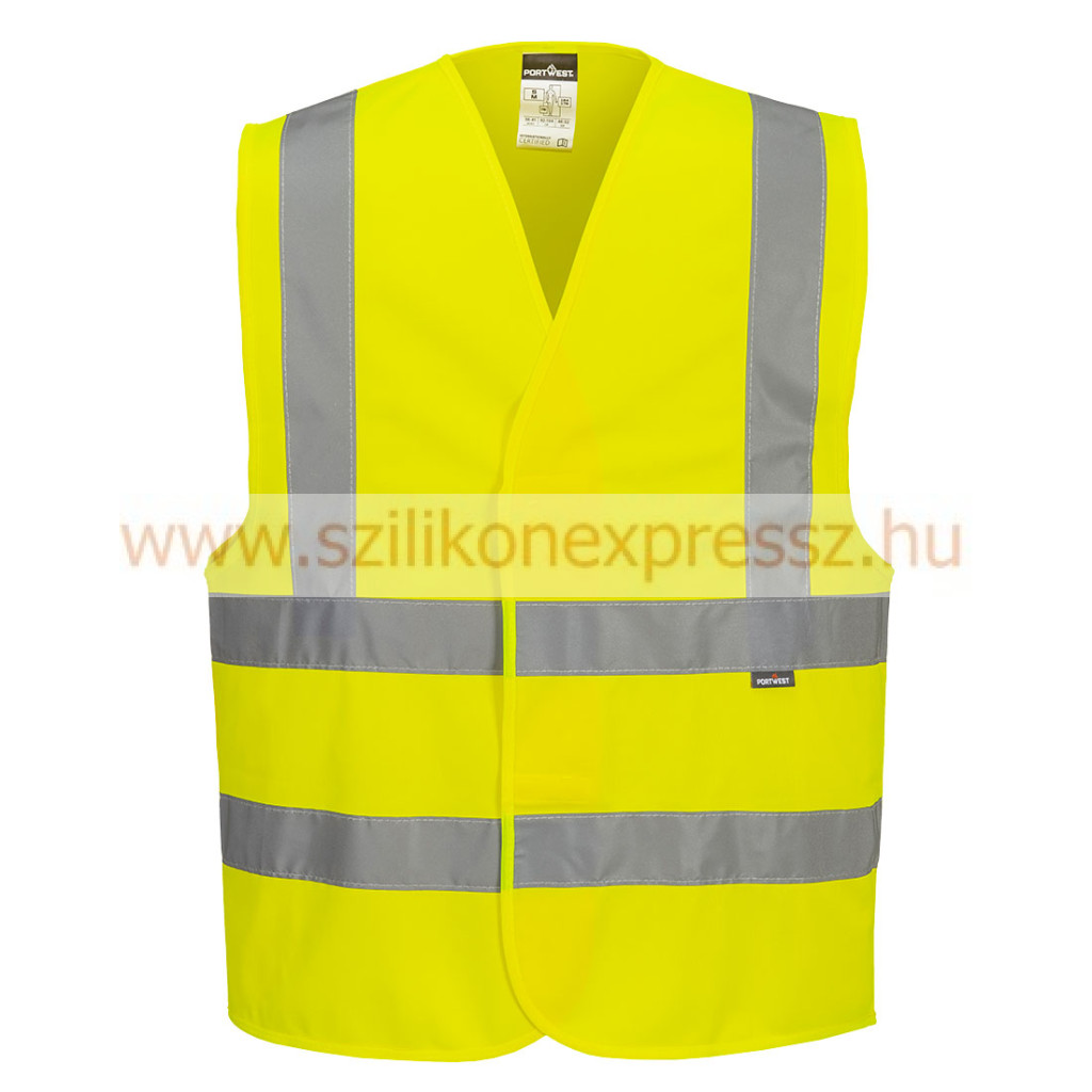 Az egyik legkedveltebb jól láthatósági munkavédelmi mellény munkaruha választékunkban. A dupla méretezés az extra kényelmet és a munkaruha fölött történő viselést biztosítja. A tépőzáras megoldás az egyszerű hozzáférést segíti. EN ISO 20471 szabvány szerint 50 mosásra minősítve.