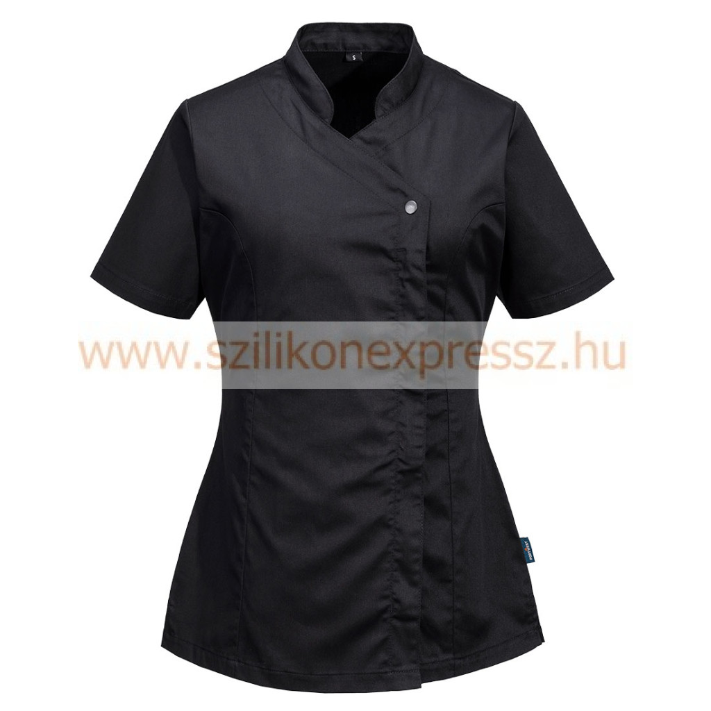 Tartós poliészter/pamut szövet női tunika, amely alapanyaga nem zsugorodik, megőrzi a termék eredeti méretét a mosások után. A kulcs fontosságú részeken innovatív rugalmas panelekkel, Action hátrésszel, oldalsó szellőzőnyílásokkal, mandarin gallérral és egy könnyen hozzáférhető elülső cipzárnyílással rendelkezik. A termék gépben mosható 60°C-on.