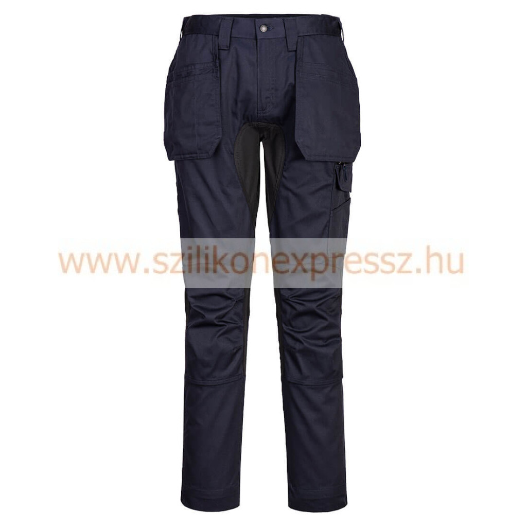 A tartós pamut-poliészter keverékszövet lehetővé teszi mind a nagy teljesítményű, maximális hatékonyságú munkavégzést, mind a kényelmet. Stretch burkolat lehetővé teszi a könnyű mozgást. Az okos funkciók közé tartozik a felülről betölthető térdvédő zseb és a könnyen hozzáférhető, többirányú combzseb a telefon, a kulcsok és a szerszámok biztonságos tárolására. Innovatív rugalmas panelek kulcs fontosságú részeken melyek kiváló kényelmet és rugalmasságot biztosítanak. Tartós poliészter/pamut szövet, mely nagy teljesítményt és maximális viselési komfortot biztosít. 10 sokoldalú, praktikus tárolózseb, kalapács hurok a munkaeszközök biztonságos tárolásához és könnyű hozzáférést biztosító tárolózseb. Oldalt gumírozott derék az egyedülálló kényelemért. 40 UPF minősítésű alapanyag, amely az UV-sugarak 98%-át blokkolja.